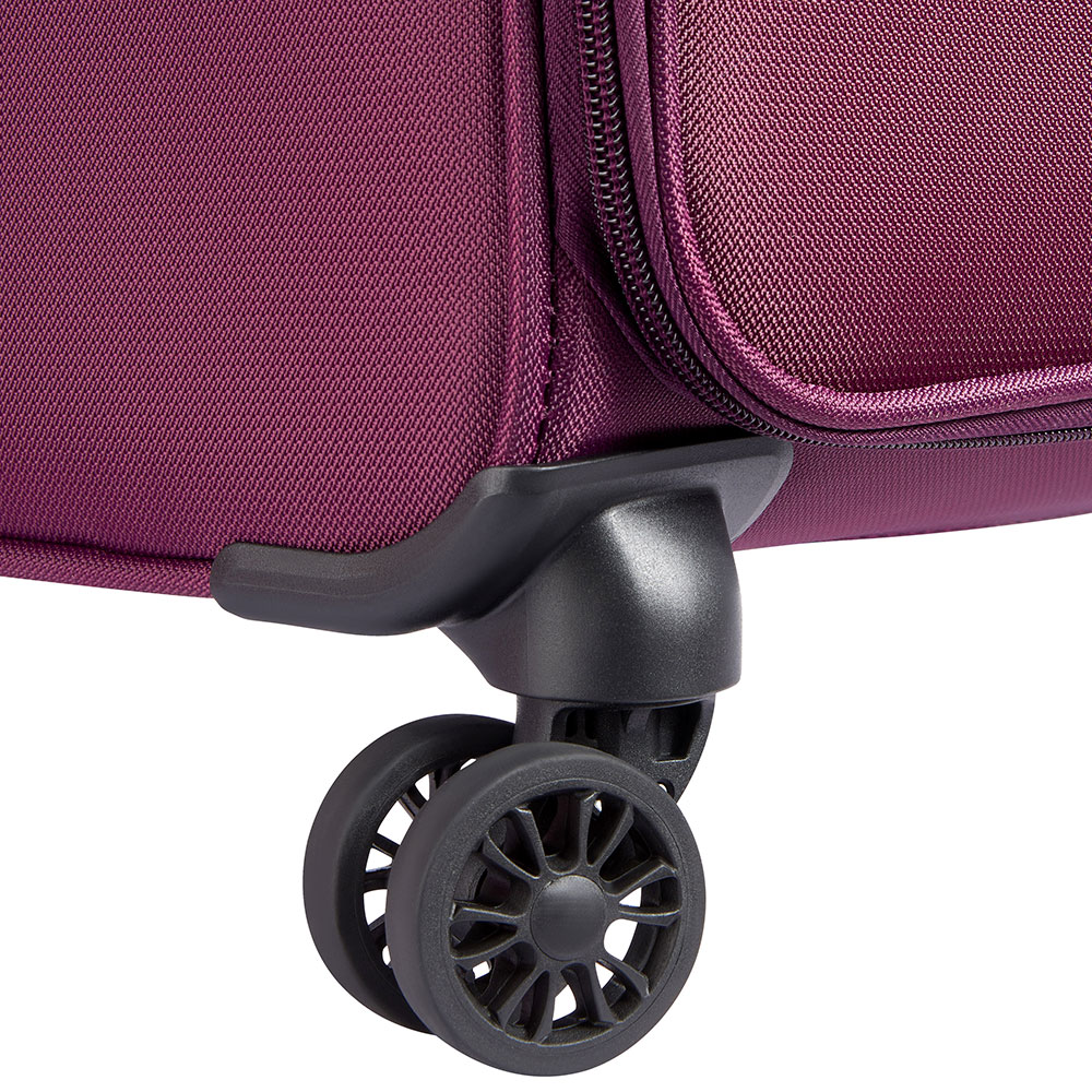 يحتوي المنتج على 4 عجلات مزدوجة قابلة للدوران 360 درجة، ومع هذه الميزة يمكنك بسهولة نقل حقائبك وسحبها على سجادة الفندق .